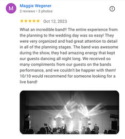 A: Yes. We include live custom arrangements for your ceremony, grand entrance, first dance, father/daughter dance, mother/son dance, open dancing, and more. While we don't have a set limit on requests, we will determine the appropriate amount of song requests for your event on your Free 15-Minute Show Design Call and include the final number in your contract so that we can allocate the appropriate amount of rehearsal time for your event.